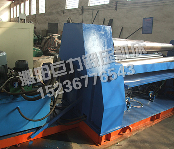 該機型的上輥固定,兩下輥呈傾斜狀做旋轉運動,兩下輥可以同時升降,也可以單升單降,用以完成板材的端部預彎。