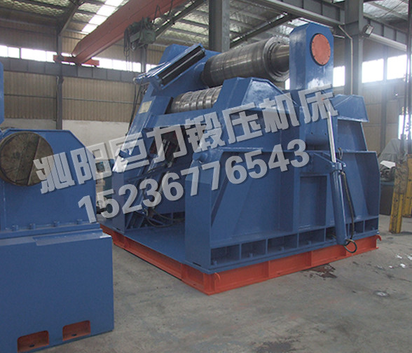 該四輥卷板機與對稱三輥卷板機比較,它可以不借助其它設備模具,直接予彎板材端部,而且剩余直邊較??;它可以不使板材調頭,而卷成工件。