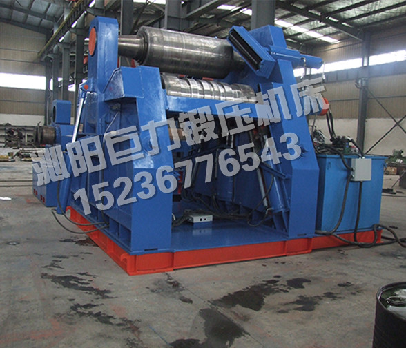 該四輥卷板機與對稱三輥卷板機比較,它可以不借助其它設備模具,直接予彎板材端部,而且剩余直邊較??;它可以不使板材調頭,而卷成工件。